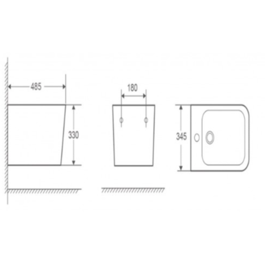 Підвісне біде з одним отвором під змішувач, колір білий.