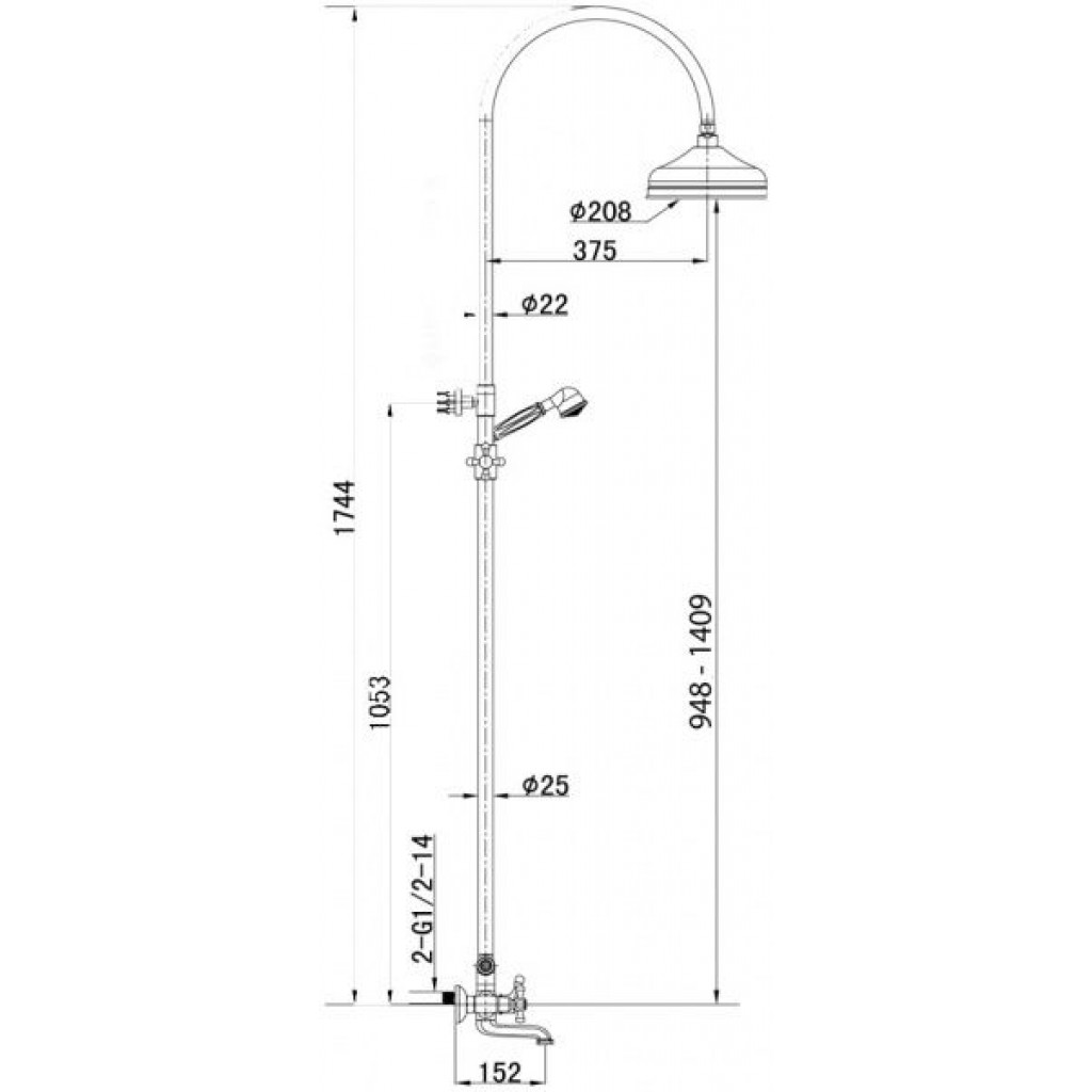 Комплектація: змішувач/душова штанга/ручний душ на 1 режим/верхній душ/тримач ручного душу/душовий шланг