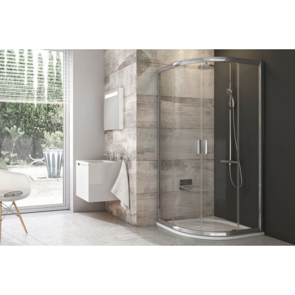 Виріб складається з двох рівних нерухомих частин і двох зігнутих частин, що утворюють розсувні двері. Встановлюється в облицьований кахлем кут ванної кімнати на піддони RAVAK Ronda, Elipso, Elipso Pro, Elipso Pro Flat, Elipso Pro Chrome або безпосередньо на підлогу з вбудованим душовим каналом або трапом.
