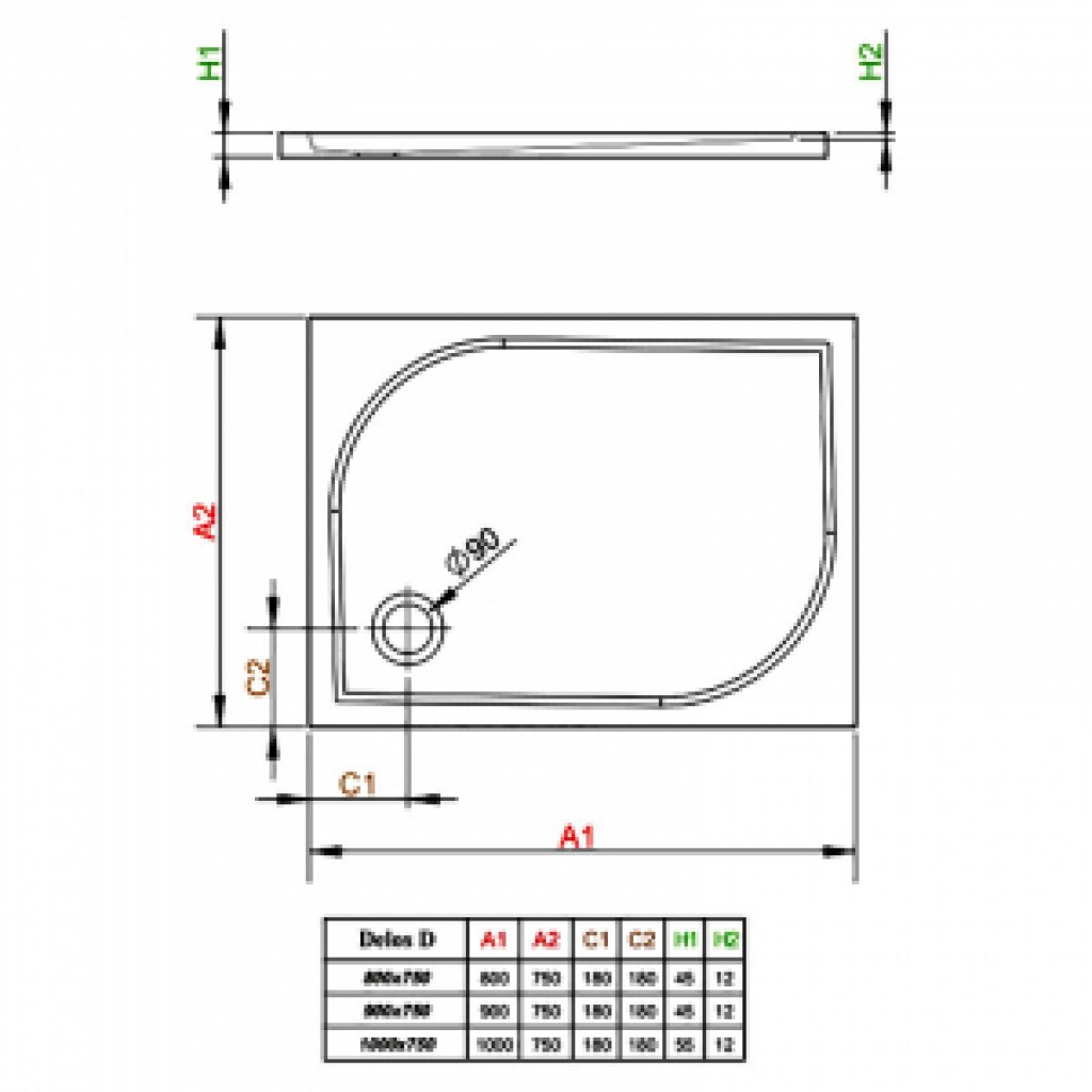 Піддон Delos D 90x75 Radaway (4D97545-03)