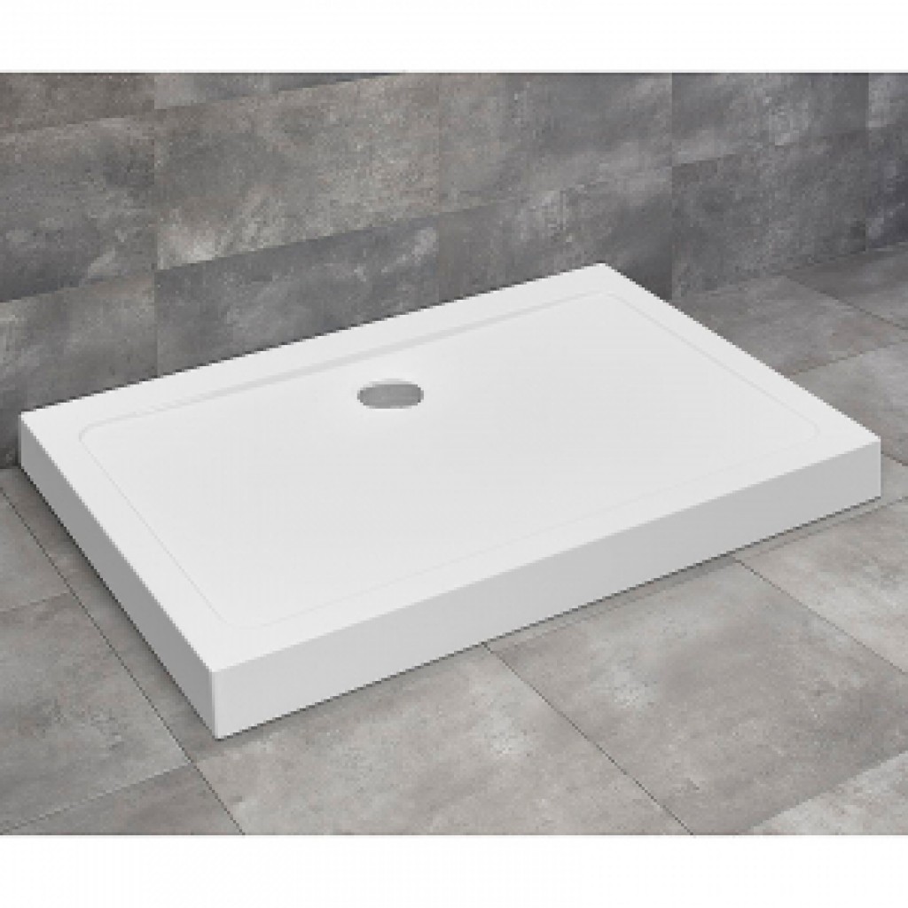 Плоский, прямокутний акриловий піддон з суцільнолитий панеллю (з 4 сторін) і ніжками в комплекті.