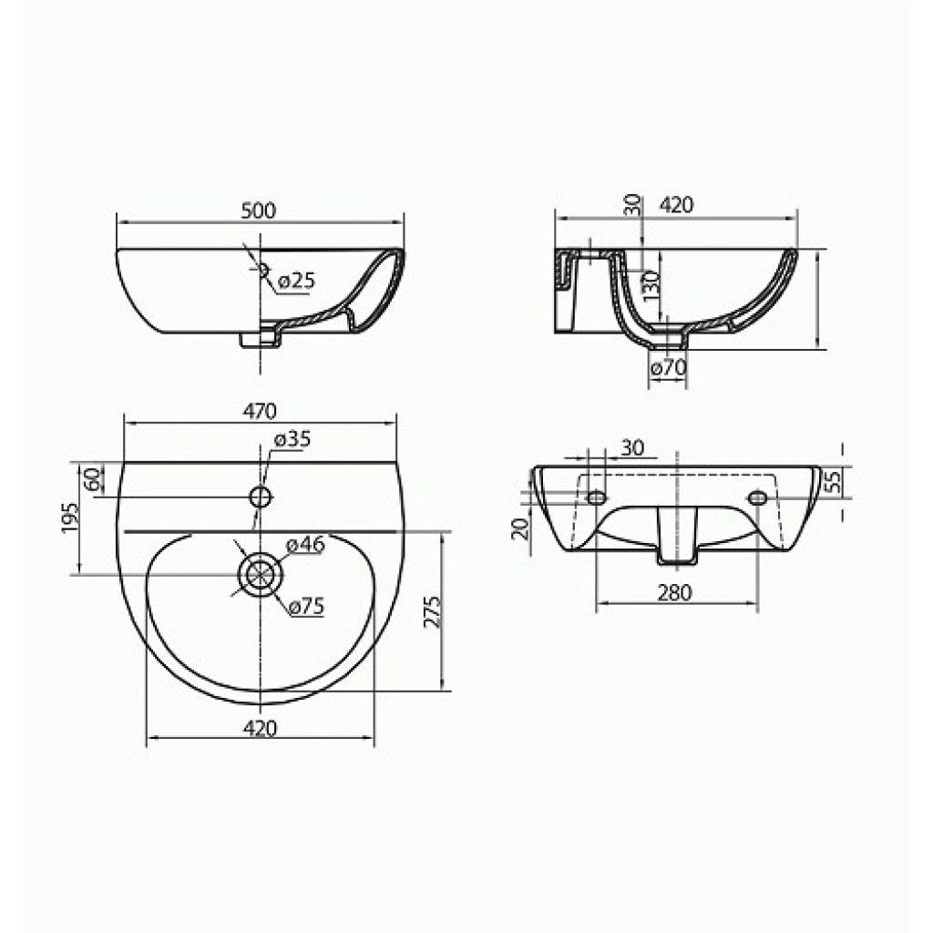 Кріпиться за допомогою гвинтів.Для комплектації з напівп'єдесталом та п'єдесталом.Кераміка українського виробництва з можливістю купівлі лише в Україні.Артикул L81150Штрих Код 4823050705178Колір БілийОтвір для змішувача ...