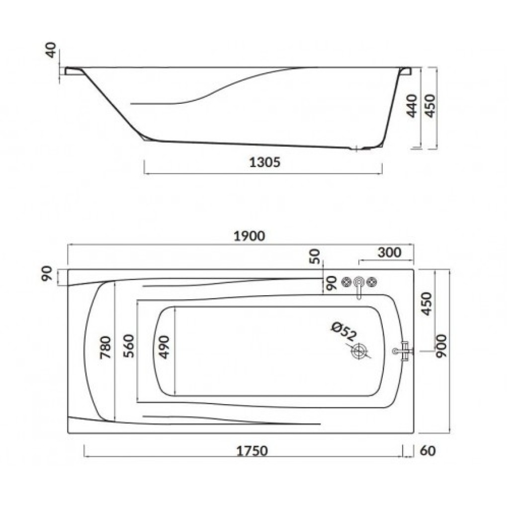 Ванна акр. ZEN 190*90 з кріпл. з ніжками