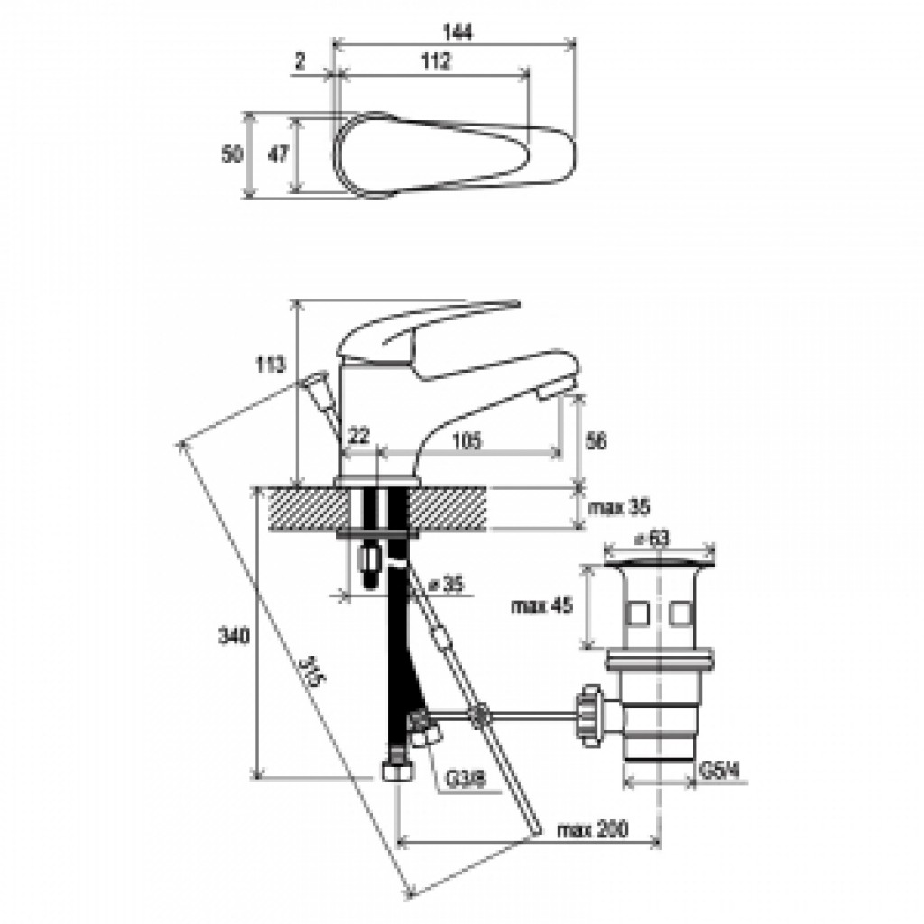 картридж (діаметр, матеріал): 35 мм, керамічнийз'єднуючі шланги: гнучкий 350 мм, діаметр G3/8відкривання стоку: з тросиком і стічним комплектомгарантія: 5 роківпідходить: до усіх умивальників RAVAK