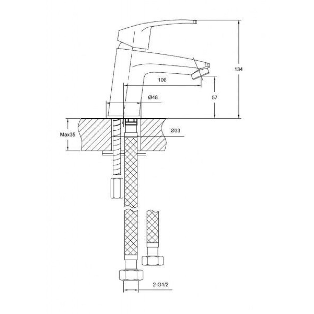 Комплектація: змішувач/підводка 35 см - 2 шт/монтажний комплект