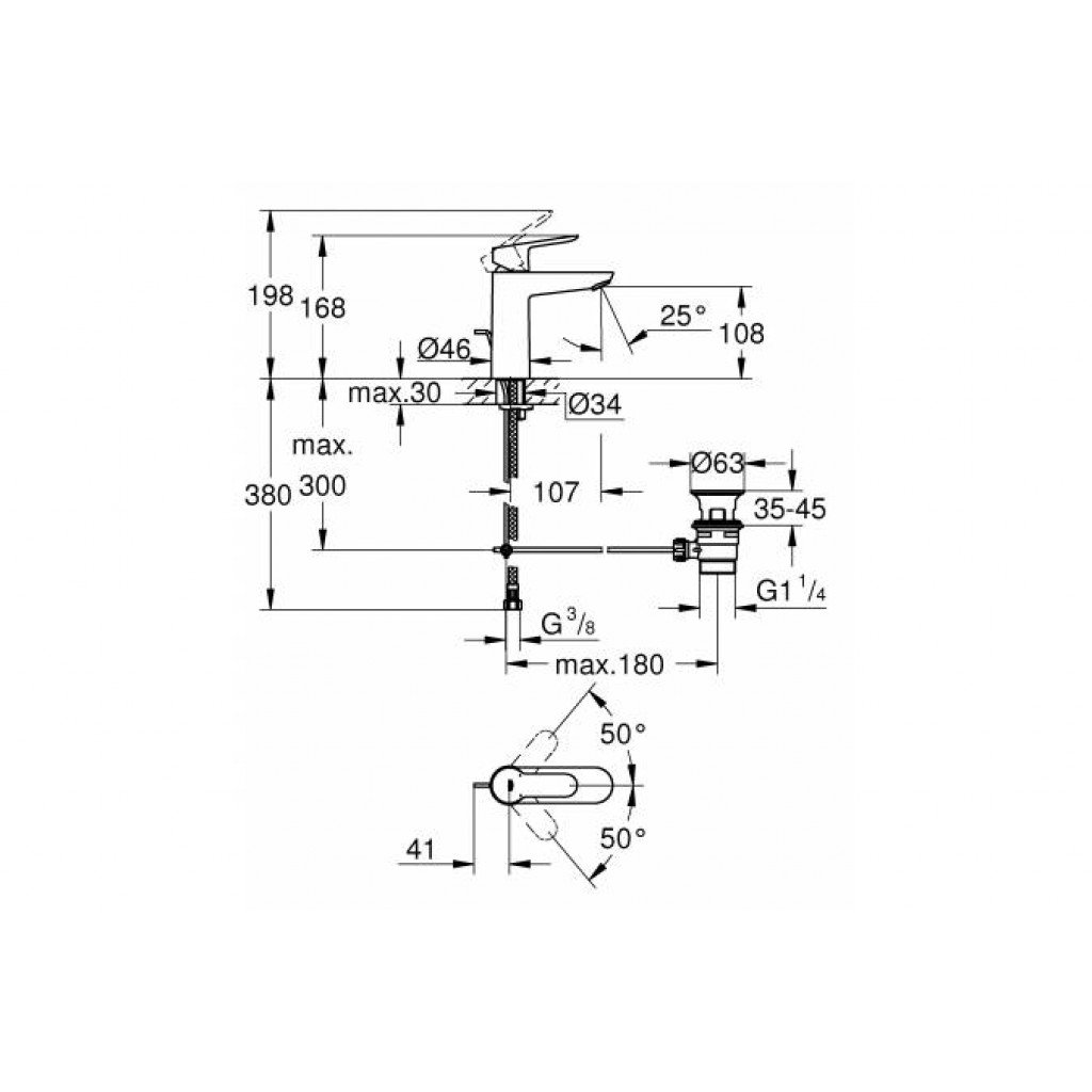 Змішувач з донним хлипаком GROHE BAU EDGE 23758000