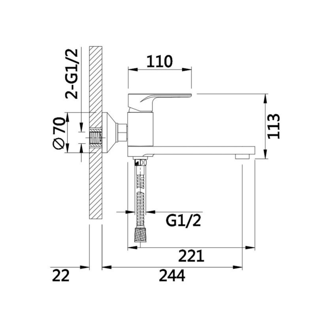 Змішувач, інструкція, відбивачі (2 шт), ексцентрики (2 шт), лійка для душу, шланг для душу 1, 5 м, настінне кріплення для душу.