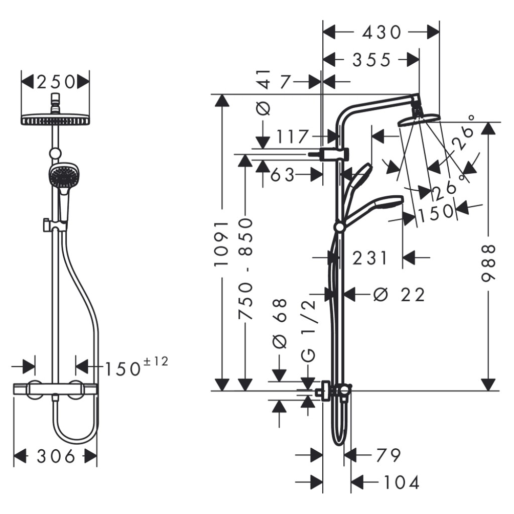 ДУШЕВАЯ СИСТЕМА HANSGROHE MY SELECT SHOWERPIPE 26764400