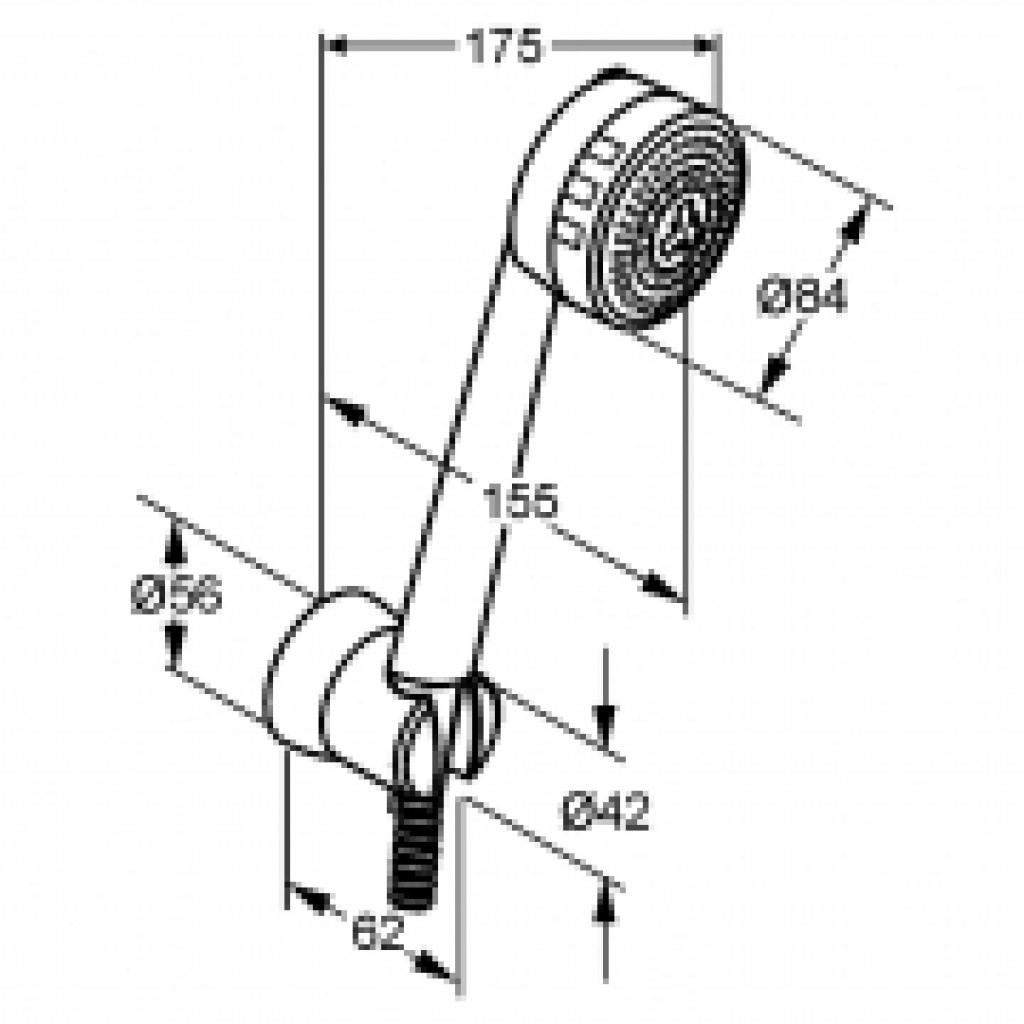 Комплектация: душевой шланг, ручной душ, держатель для ручного душа.