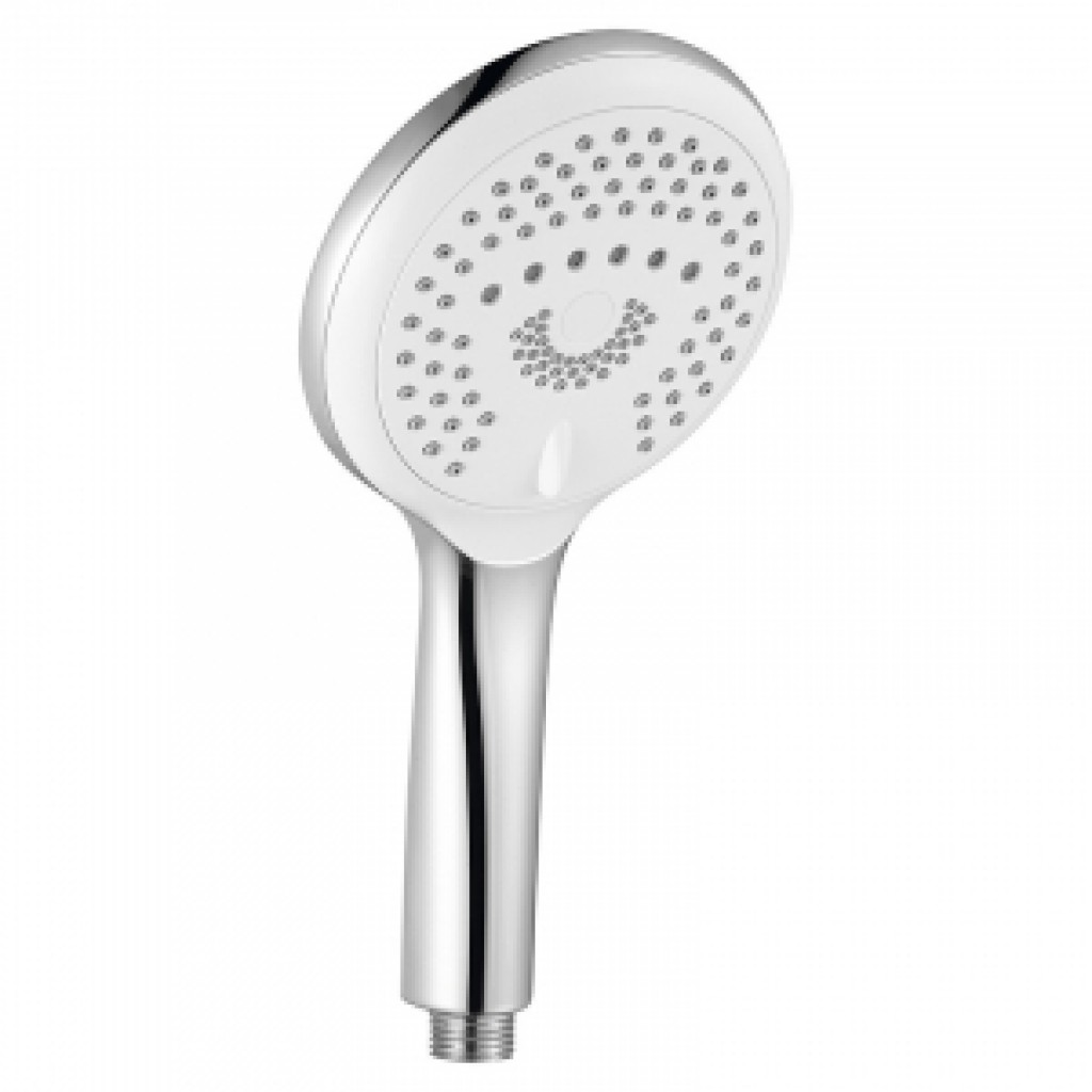 Ручная душевая лейка DN 15; Три типа струи: дождевая, мягкая, массажная; Система быстрой очистки от известковых отложений; Материал: Пластик; Цвет: Хром.