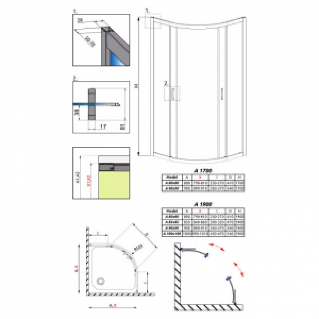 Размеры: 900x900x1700Страна производитель : Польша.Материал: Цветное стеклоПрофиль: хромПроизводитель: Radaway...