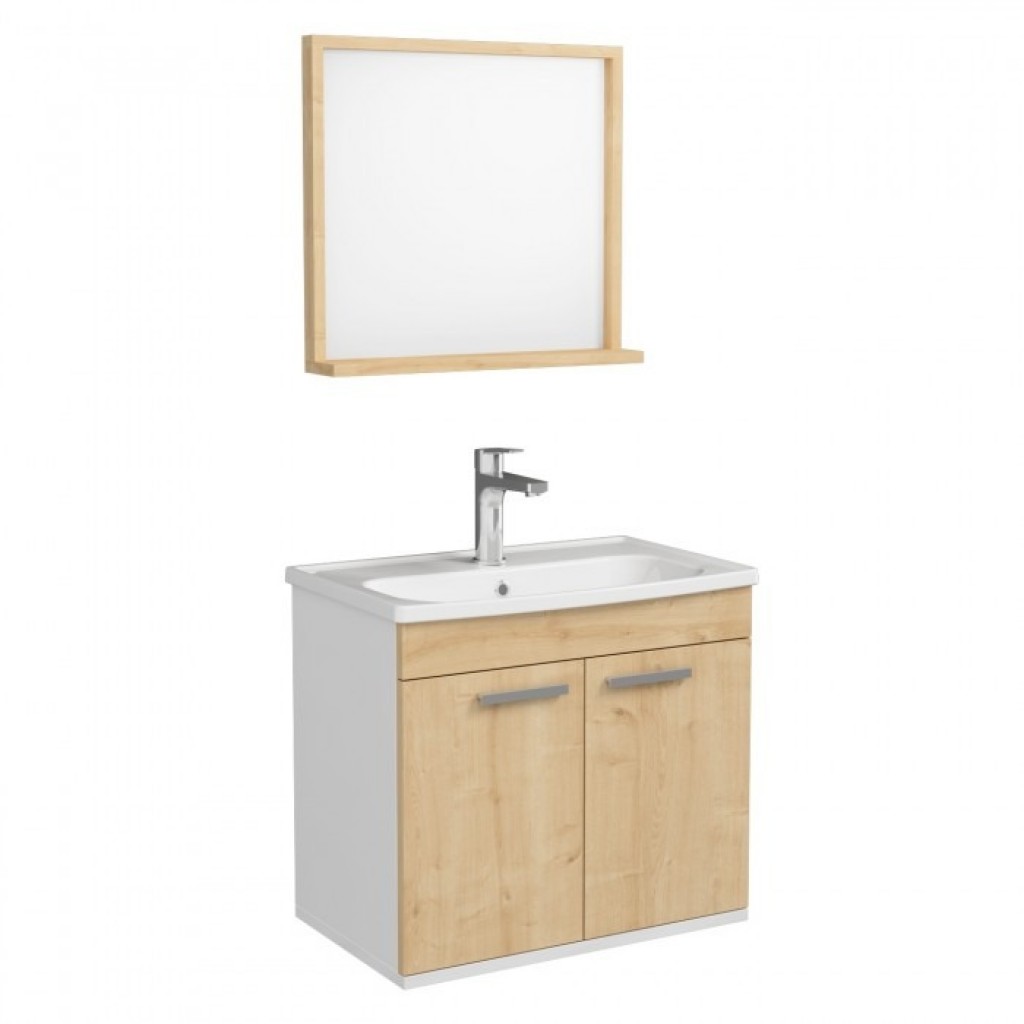 Комплект мебели RJ First 60 см дуб RJ20600OK – это современный набор состоящий из тумбы, керамической раковиной с переливом и отверстием под смеситель, а также зеркала с полочкой. Тумба выполнена в цвете дуб, монтаж подвесной. Раковина имеет овальную чашу и выполнена в белом цвете.