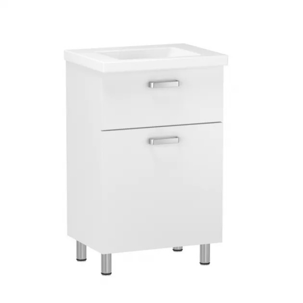 Комплект мебели RJ Flora-B: тумба напольная + умывальник накладной Moduo, 60 см RJFU039-0160WHSET(RJFU039-0160WH+K116-011)