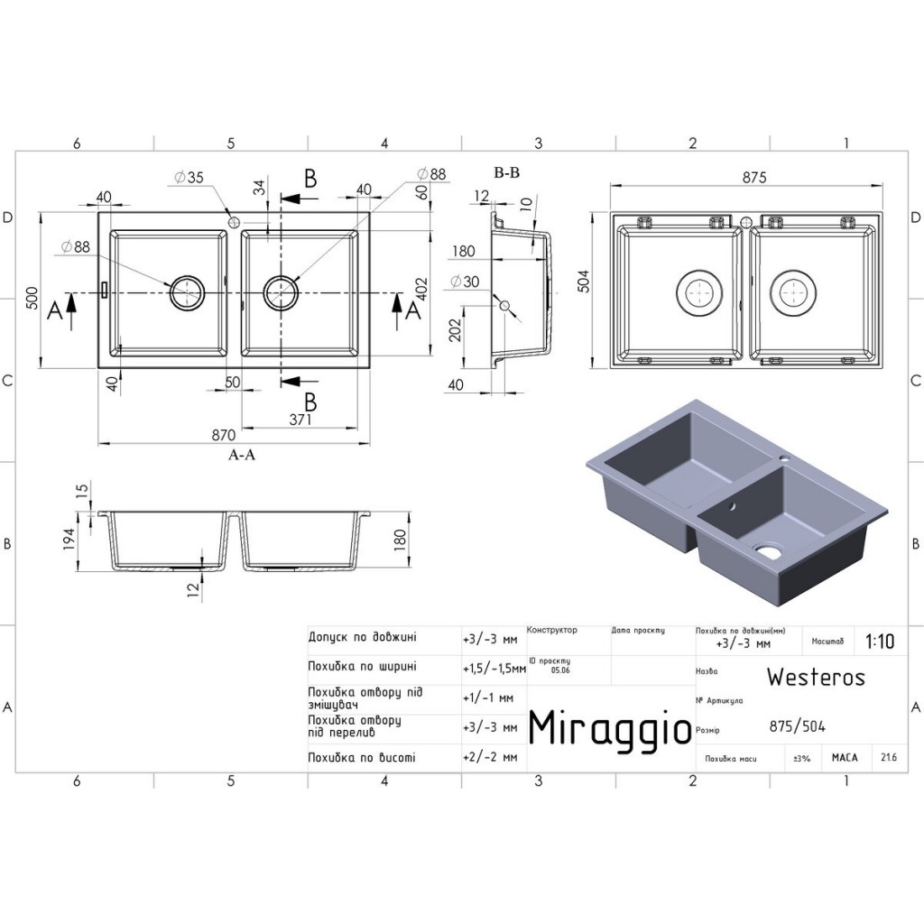КУХОННАЯ МОЙКА MIRAGGIO WESTEROS MIR0000065 GRAY